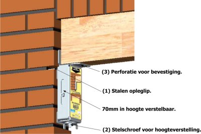 Die „Brick Bracket“ kann auch zum Aufbringen von sogenannten Combi-Stürzen verwendet werden . Sie können den Stahlwinkel sehr leicht machen (z. B. 90-90-3 mm) und das Mauerwerk mit Murfor® verstärken.